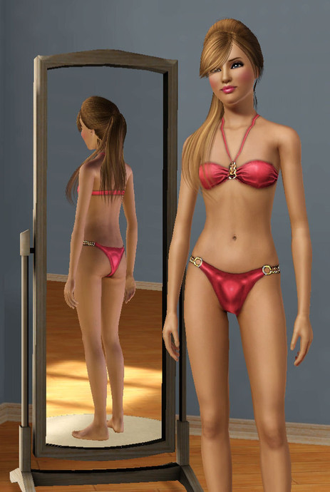 Adventurous, Charismatic, Flirty, Photographer's Eye, Snob. Lifetime Wish: World-Class Gallery. Likes: Sushi, Latin music, Hot Pink. Sim based on a Beach Bunny Swimwear model, name unknown.