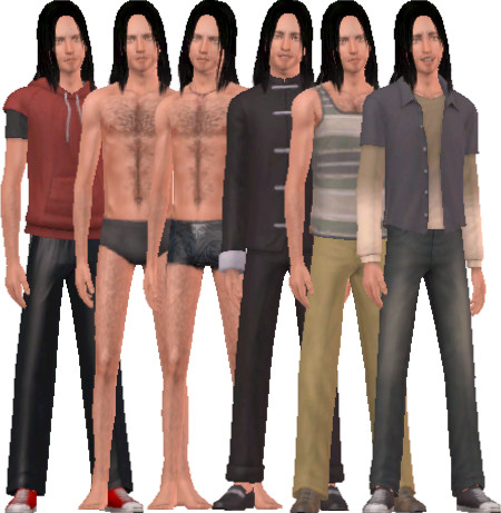 Expansion packs used are: World Adventures, Ambitions, Late Night, and Generations. All of the clothing he wears are from the game.