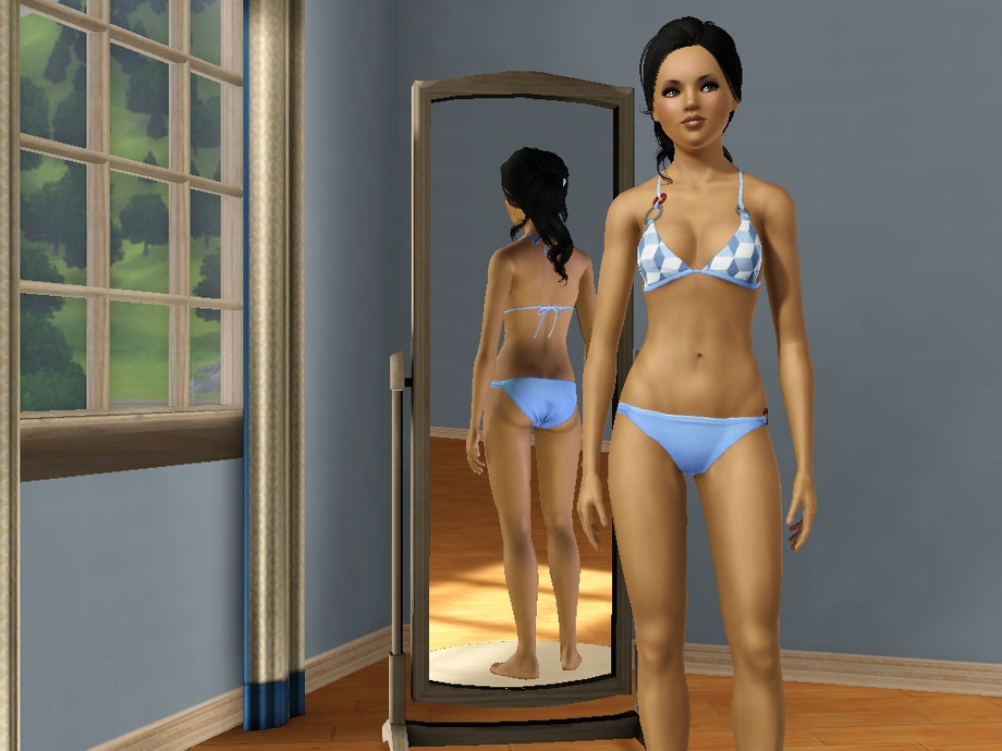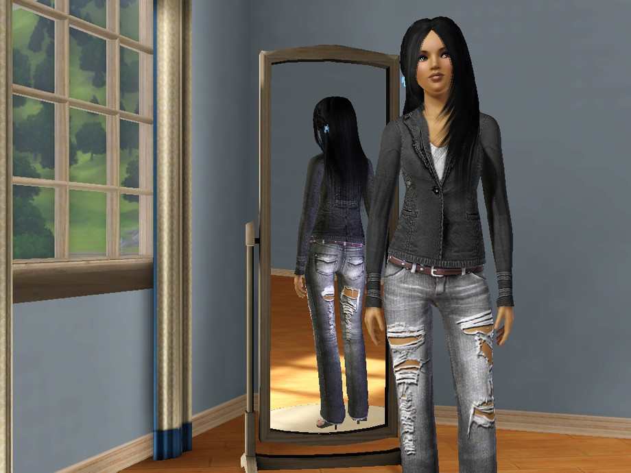 Estella is a game born sim - I was pretty impressed how pretty she turned out so just tweaked the make-up and clothes a bit from the obnoxious outfit the game had her in.
