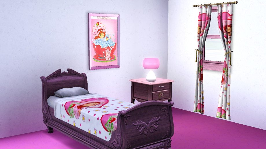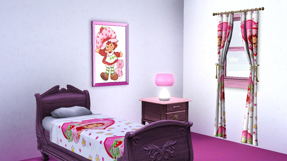 There are five paintings in this set! She is riding a bike; with a friend's puppy-Puptart; with her cat-Custard; with two of her friends and in a bubble bath. I had this doll when I was a little girl and thought these would look great in a girl's room. They would also look great in MandySA3's Strawberry Shortcake bedroom set :) Enjoy!