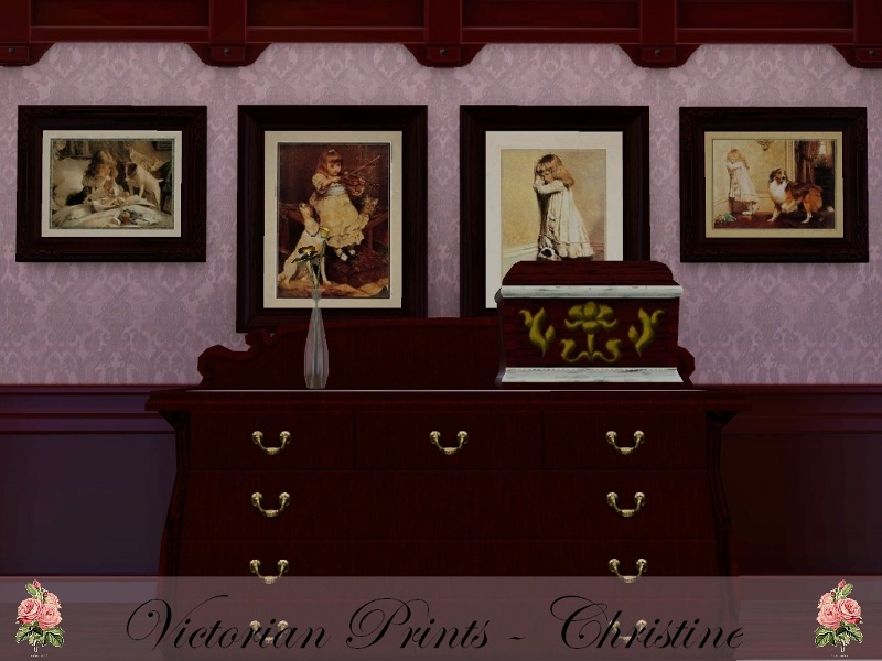 Children Victorian Prints are perfect for your Sim homes, these prints go with a formal setting, a child room or A nursery. As always, I hope you and your Sims enjoy! Happy Simming,Christine