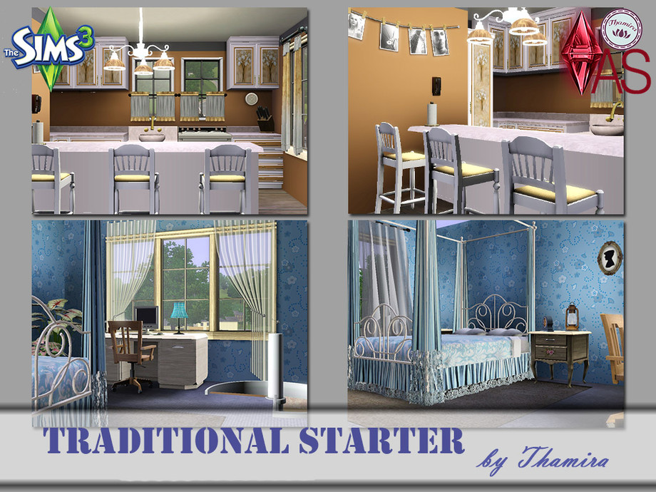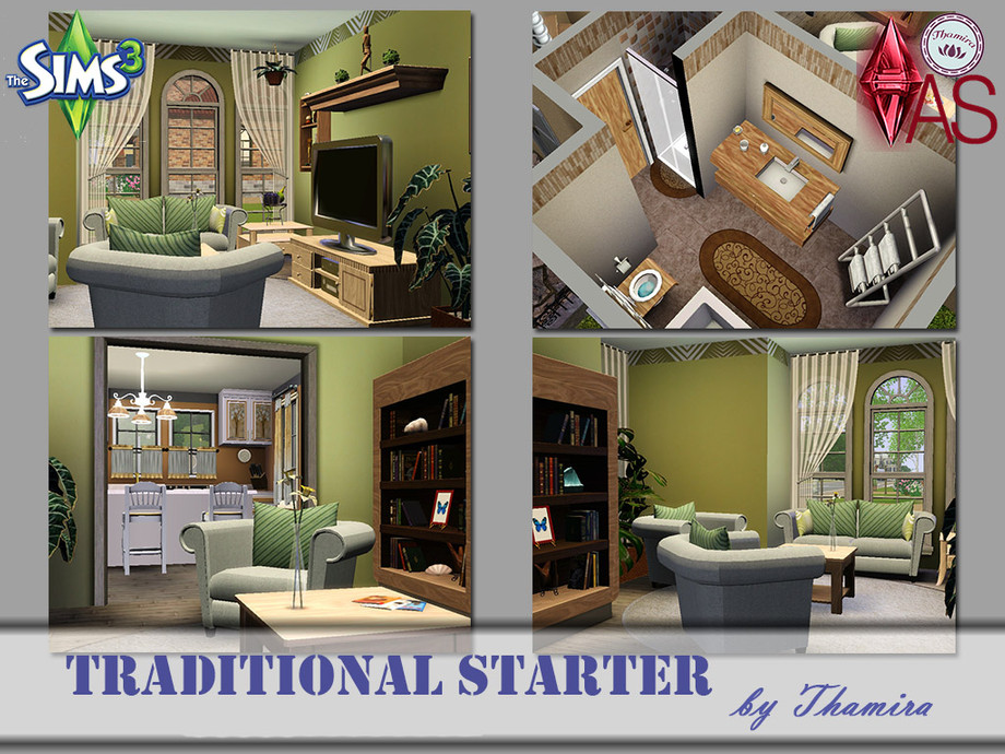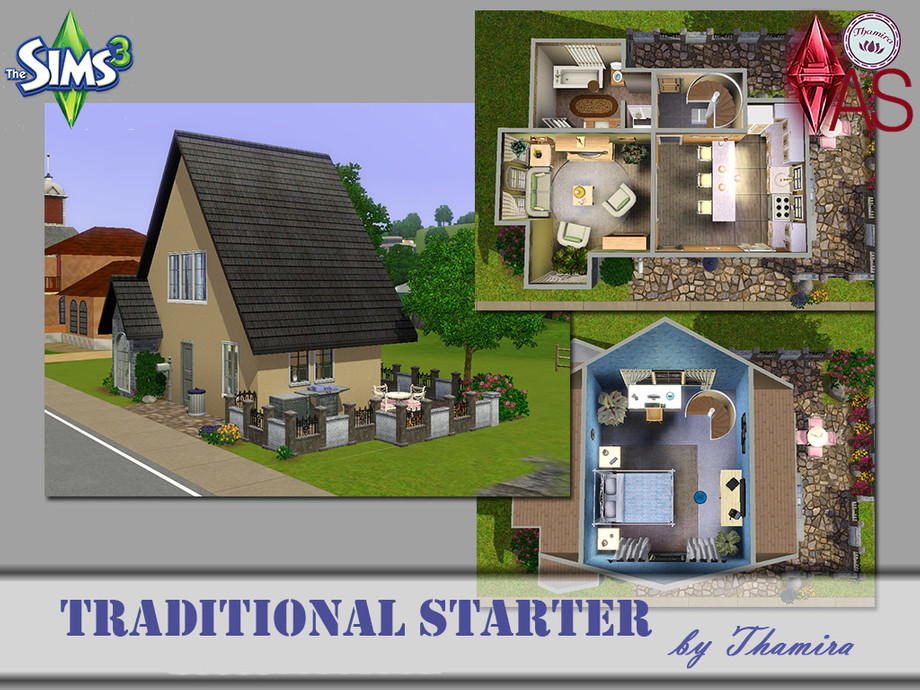 This is a normal traditional house for 2 Sims that has not much to offer architecturally, but a very nice harmonious interior and a little terrace.