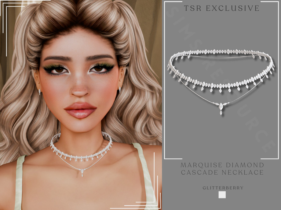 Sims 4 — Marquise Diamond Cascade Layered Necklace by Glitterberryfly — A silver layered necklace with marquise diamonds