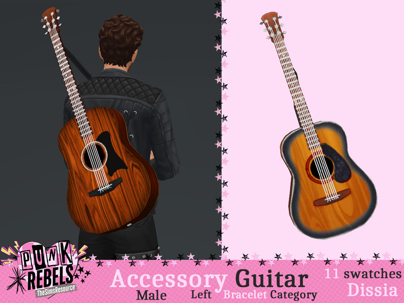 Accessory guitar for male sims on your sim back on left or right side