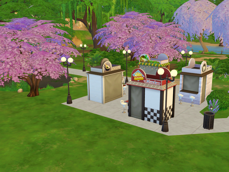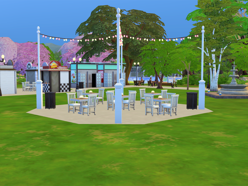 Community park with playground area, 2 public bathrooms, 4 food trailers, 2 picnic's tables and dining area.