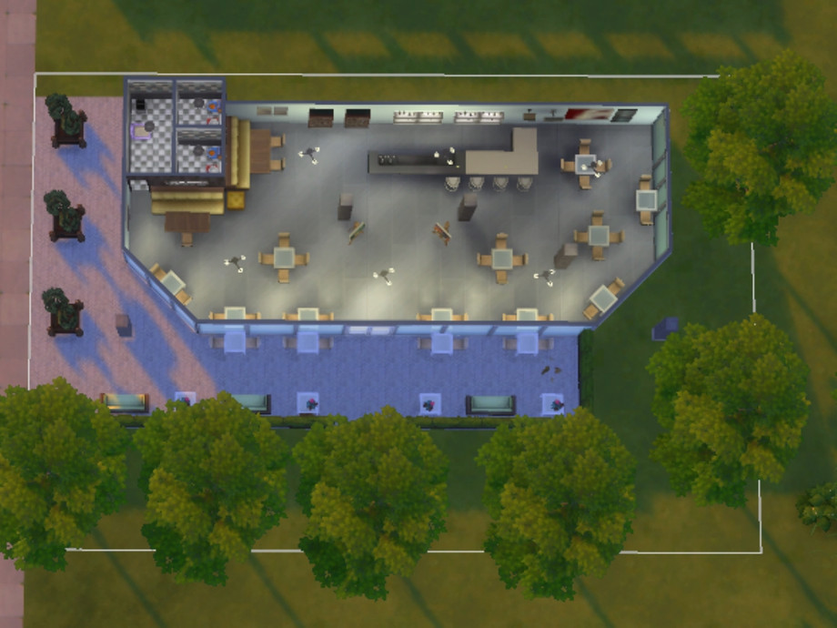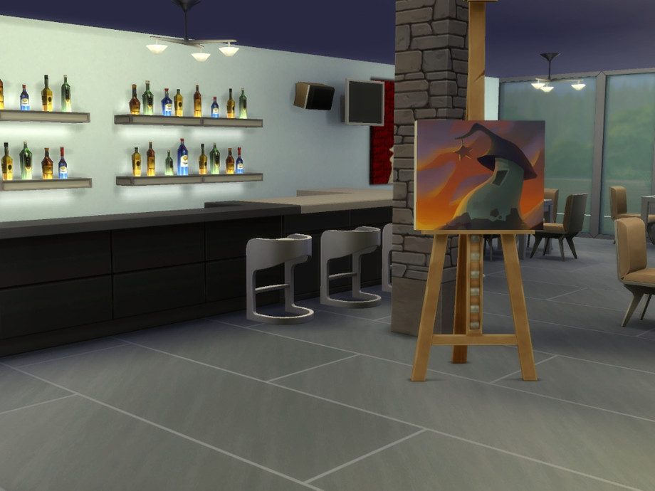 Gala Cafe is an artsy cafe for your artsy sims. It's a perfect place to hang out and have a drink, and if you feel like it you may even paint some of your own masterpieces on two easels in the cafe! The cafe is spacious with plenty of seats inside as well as outside, so don't hesitate to visit!