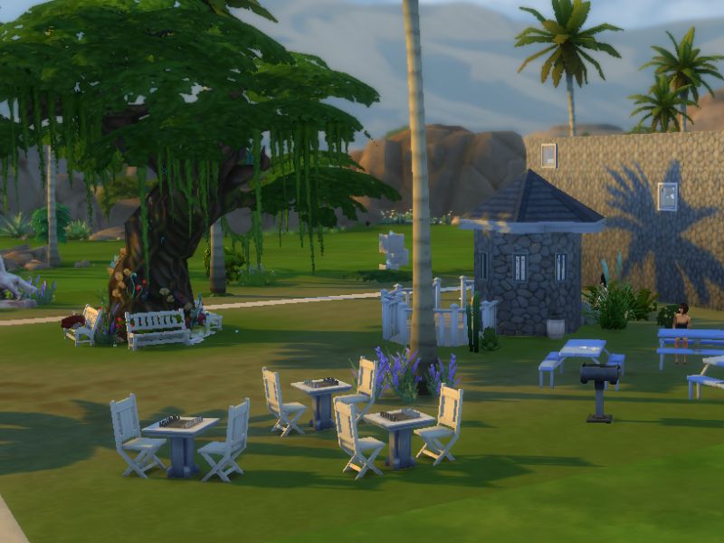 Cold hard cement benches to sit a tired Sim's weary feet, give an Elder Sim an aching back, or just to take a very uncomfortable nap..