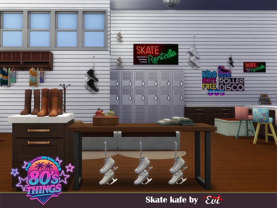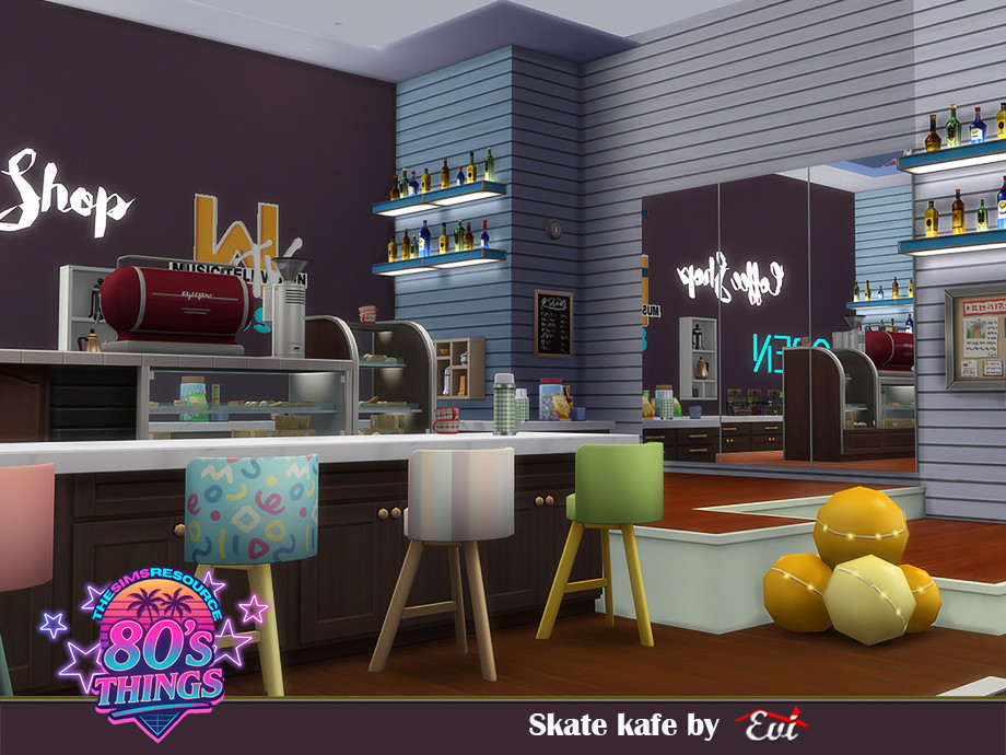 Sims 4 — SKATE CAFE by evi — Some colours, some neon labels, disco balls,laughing and shouting lots of fun consist this