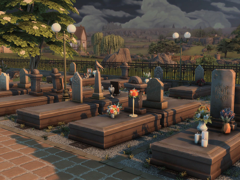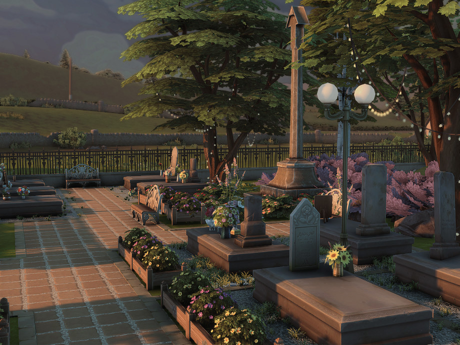 A peaceful cemetery inspired by old European graveyards, nestled in the countryside and filled with detail. Willowgate Cemetery is the perfect place to add realism and depth to your Sims' world - whether you're storytelling, playing with occult Sims, or simply building a meaningful neighborhood.