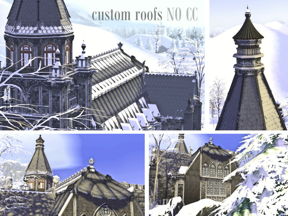I made custom roofs (no CC) out of objects, if you do not own some of the packs, the build might look completely different.