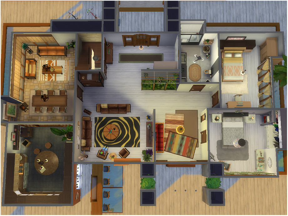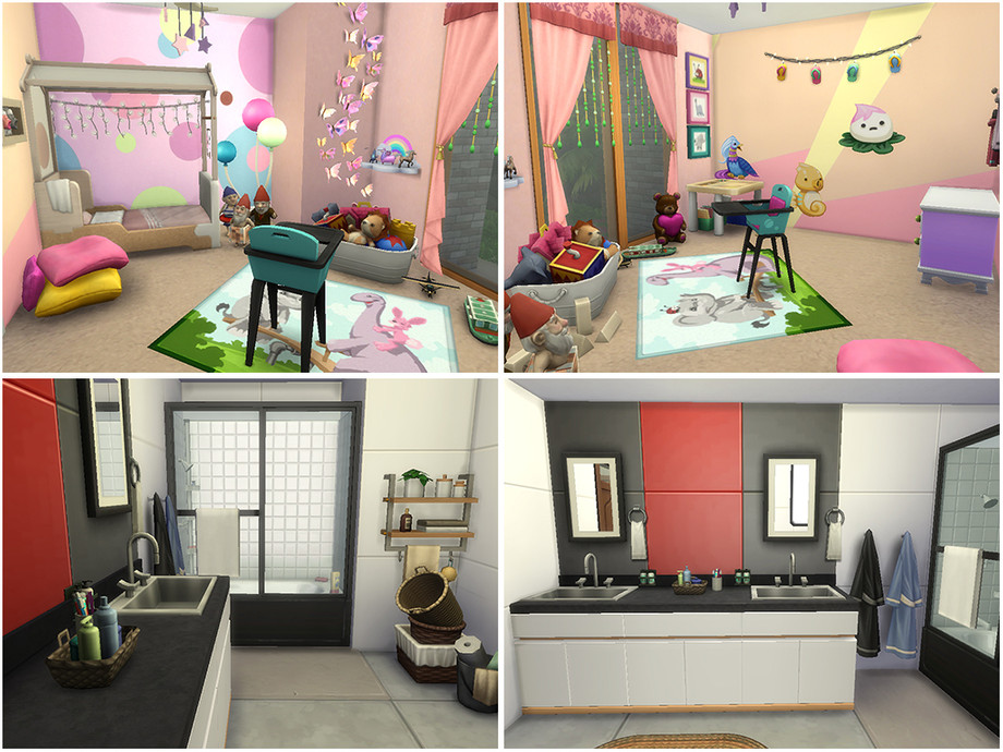 The house is big enough to live as a family. If you have a baby, they deserve a fun and colorful room :) Your Sims can be happy in this house.