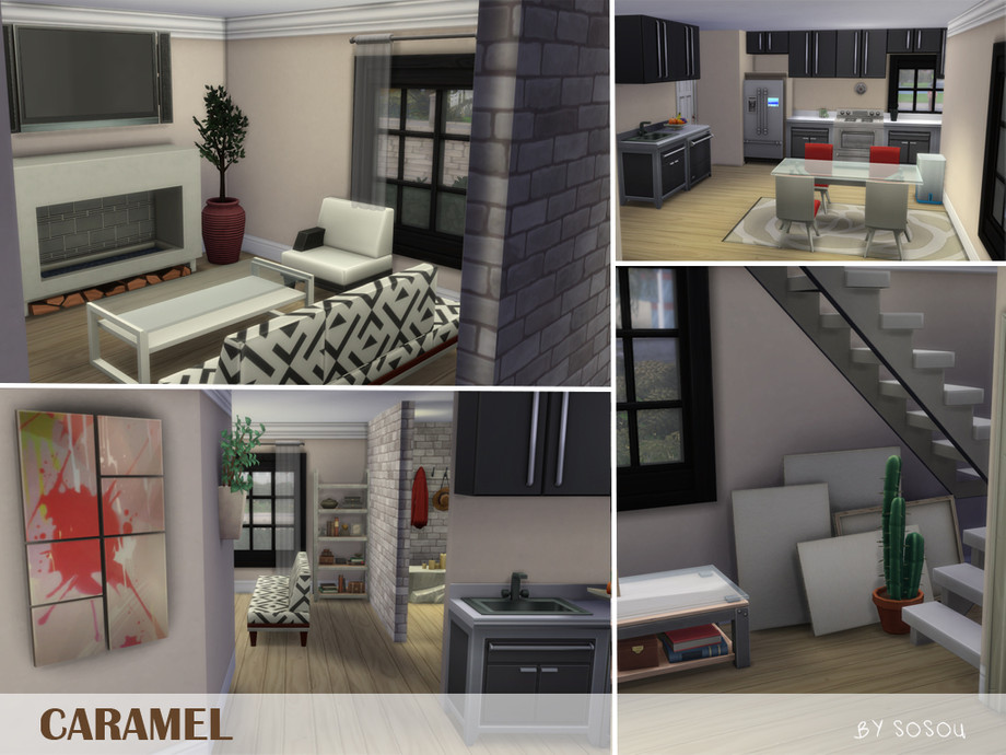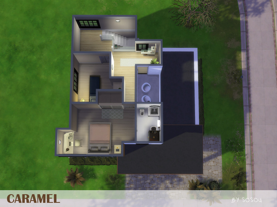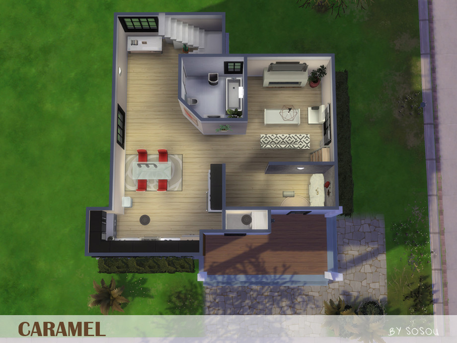 Sims 4 — Caramel by Sosou — Do you want a modern house? But small? With a little balcony? Maybe with a taste of caramel?