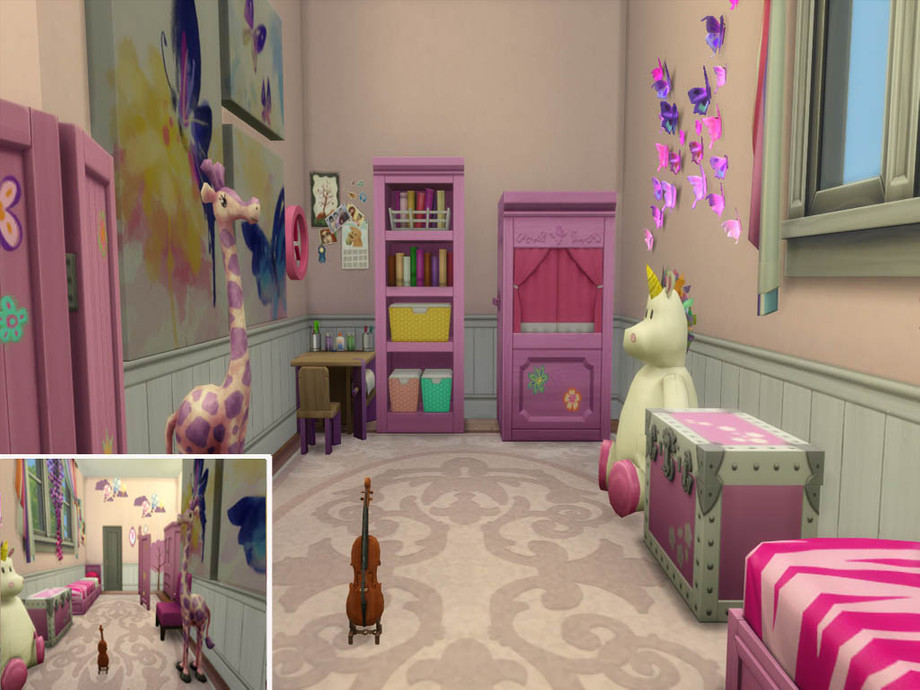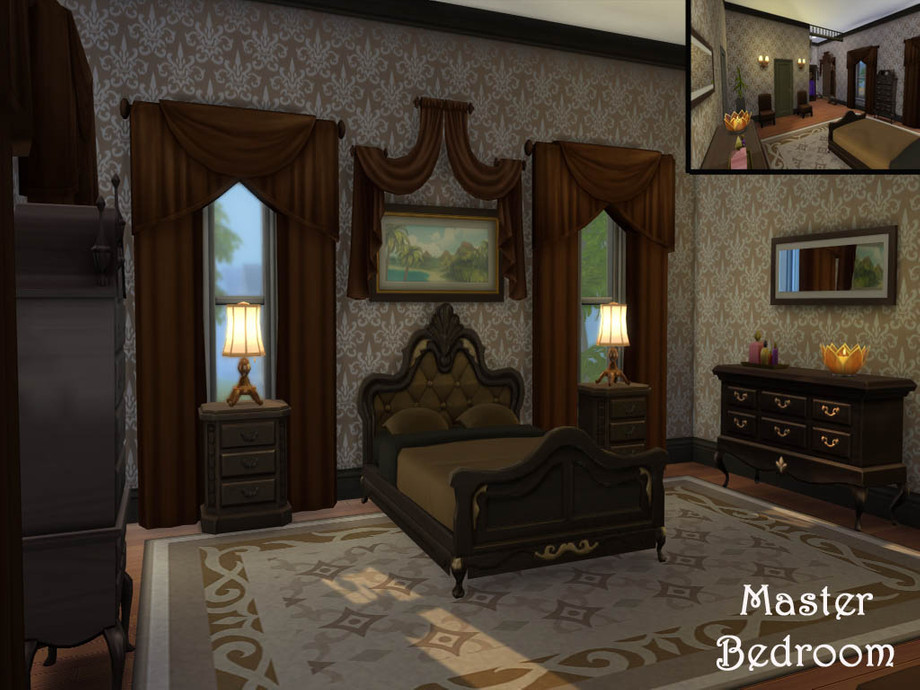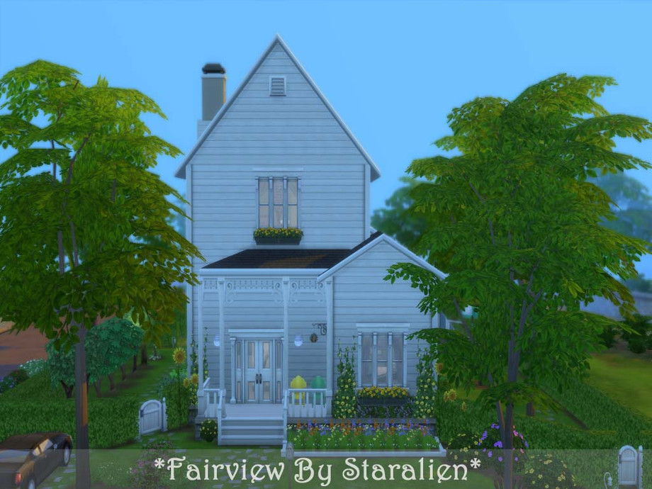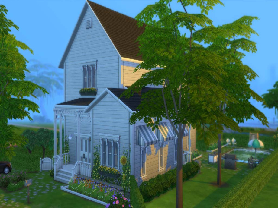 This is a lovely country cottage with a garden, playground, swimming pool with outdoor entertaining. On the lower floor are a living room, open ended Galley Kitchen with a pass through, Den, and Half Bath. On the upper floor are 3 bedrooms and 2 full baths. Decorated in a comfortable, yet elegant style, your Sims are sure to be happy here.