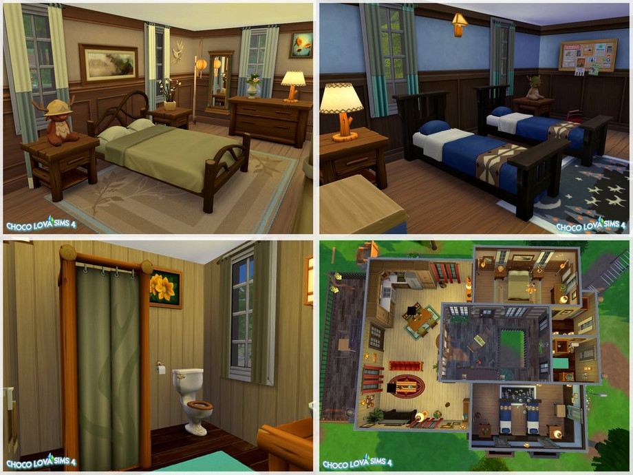 The cabin is a lovely house perched in the trees. Can accommodate up to 5 Sims. This is the ideal home for a good holiday!