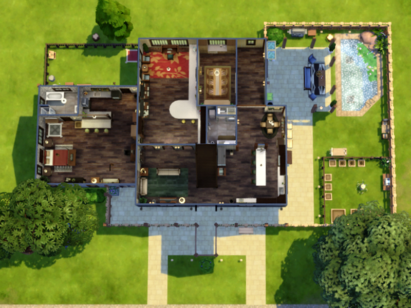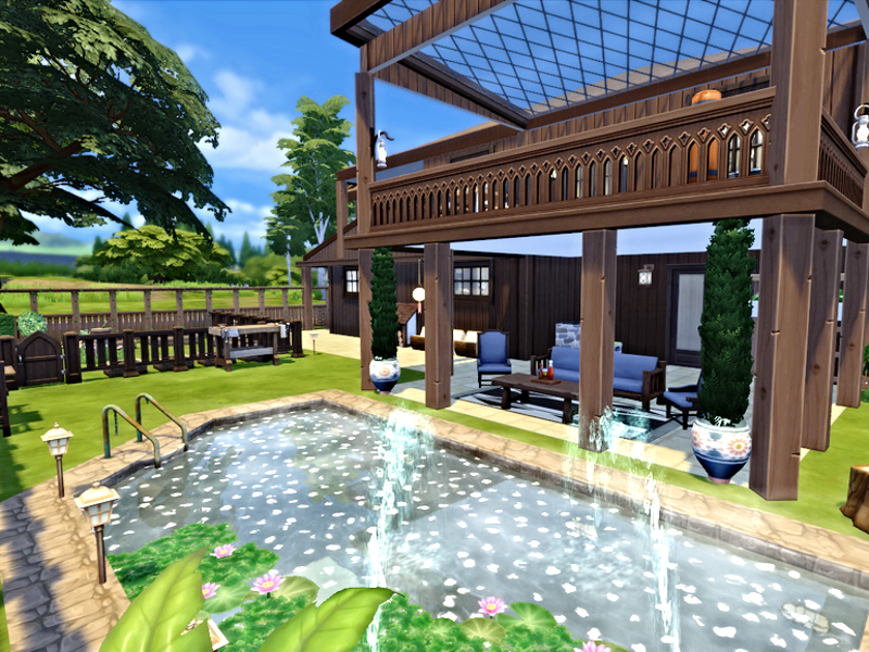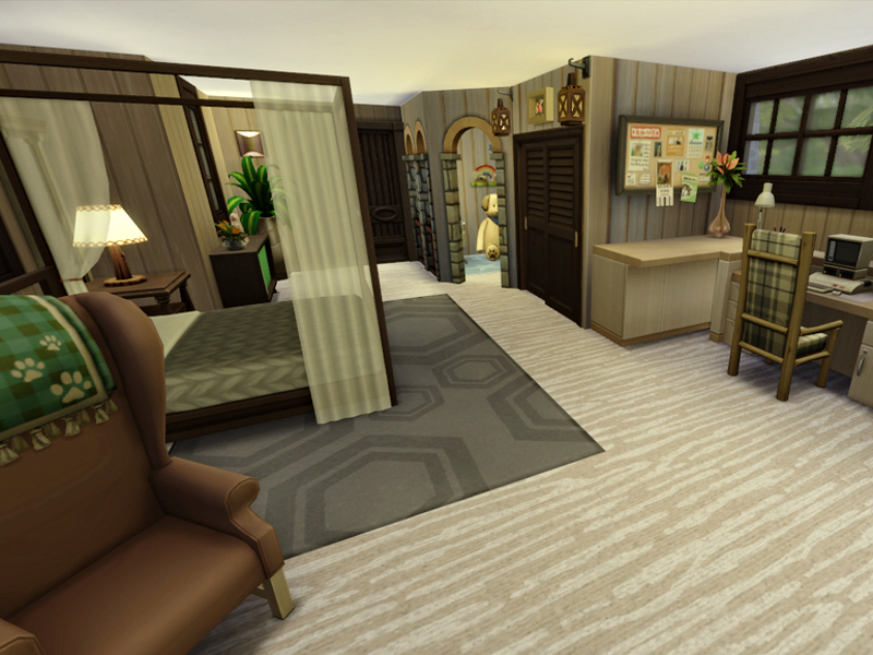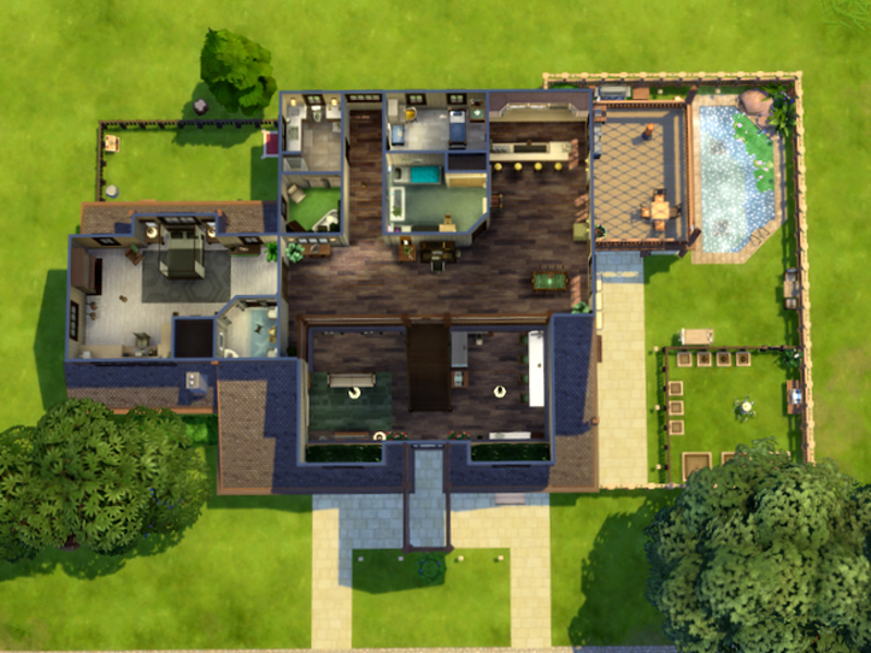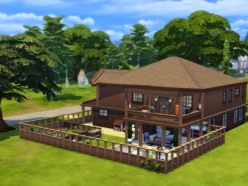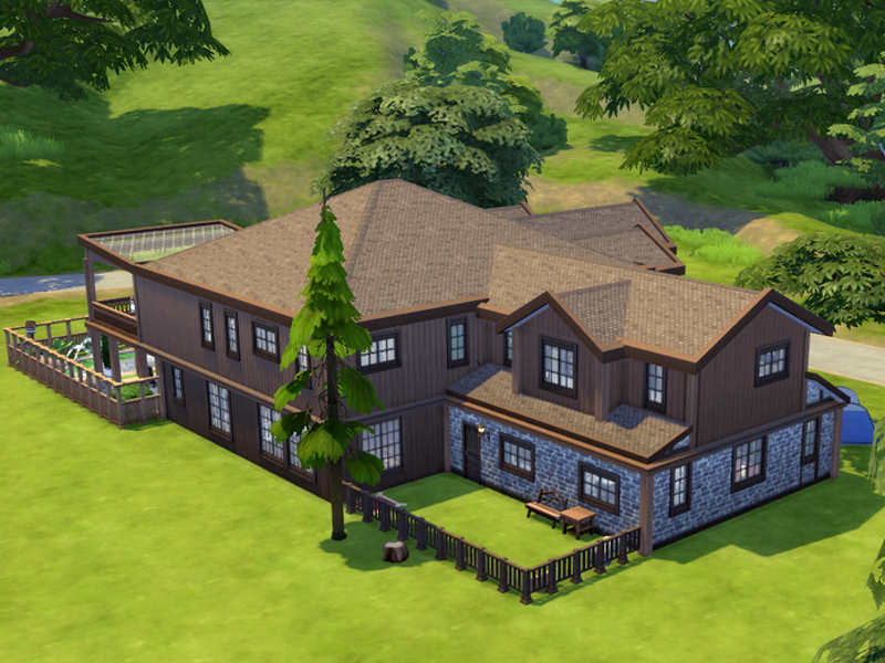 This rustic house is perfect for those sims wishing to start a large, loving family who also love to spend time outdoors. There is plenty to keep your sims entertained, whether that's nurturing their green thumb in the garden, relaxing with friends and loved ones at the bar, or looking over their hard-earned collection in the observatory. This lot also features a studio-sized attachment for that adult-child that won't move out, nanny, or--for those bold sims--perhaps even a secret lover?