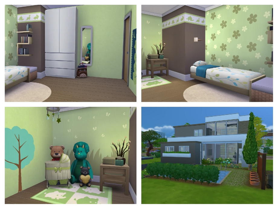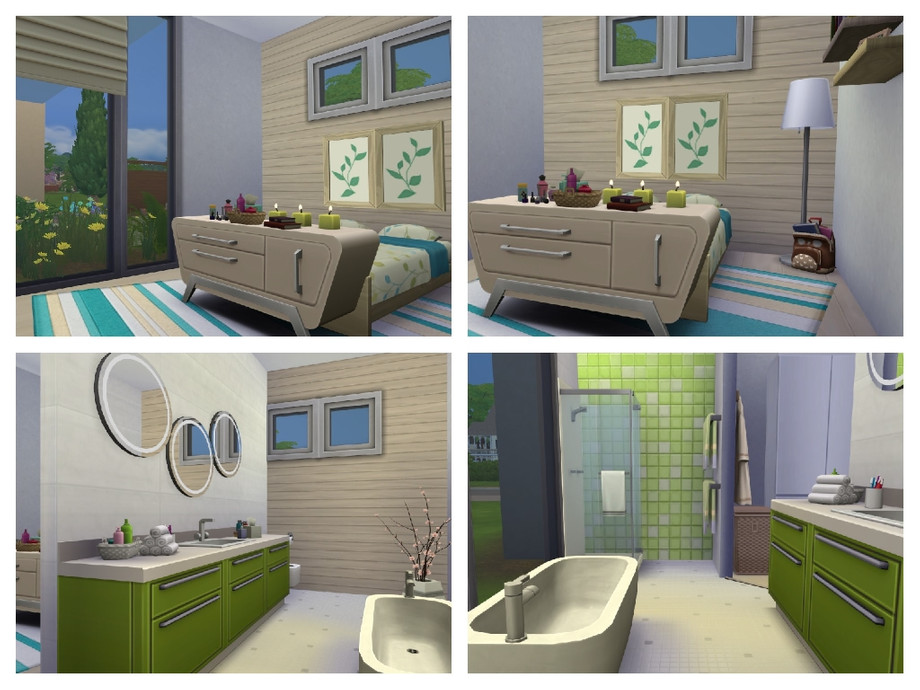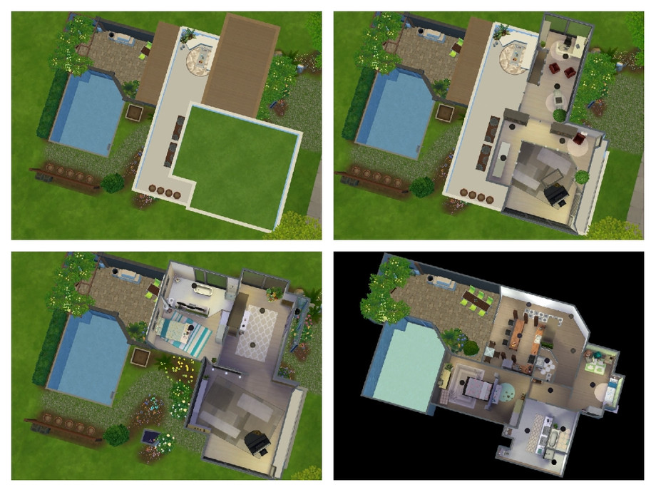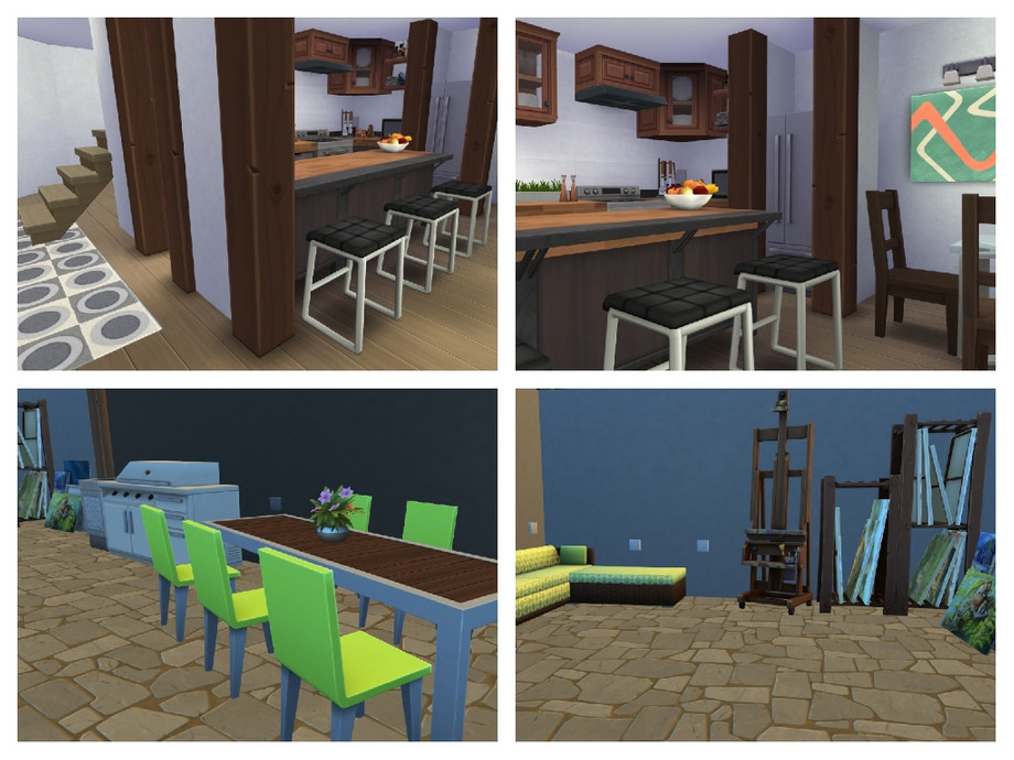 This three stories, three bedrooms family house is perfect for creative Sims or for those who love gardening. The house is rather minimalistic and is quite versatile. Among kitchen, living room, bedrooms & bathrooms it has a pool, garden, artist studio, grill area, office and library.