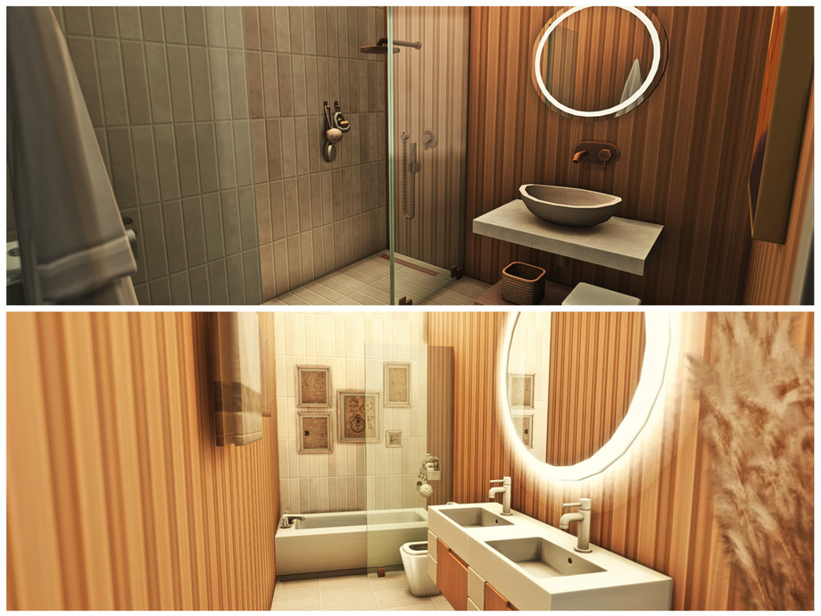 Ooolala! I love midcentury modern! and the tones you used are so neutral and spot on for this style. Thank you so much as playability is so much better all on one floor. happy simming!\:wub\: