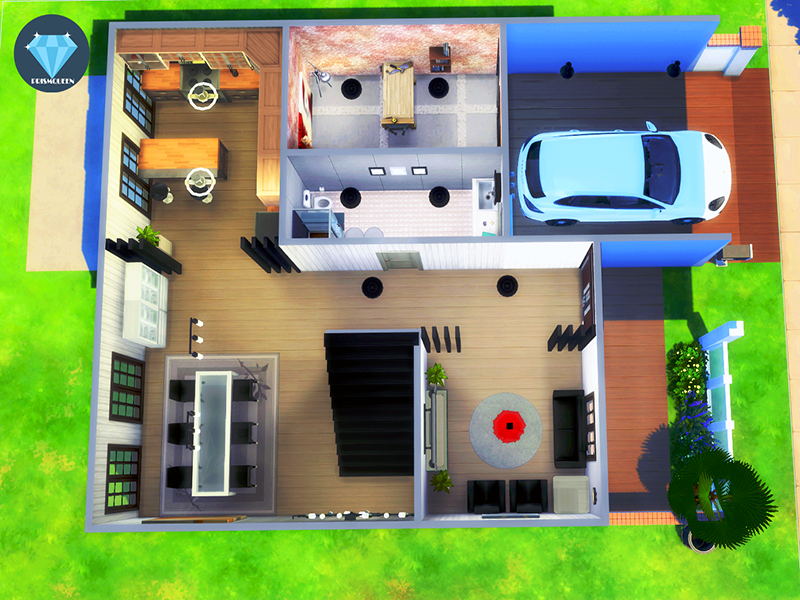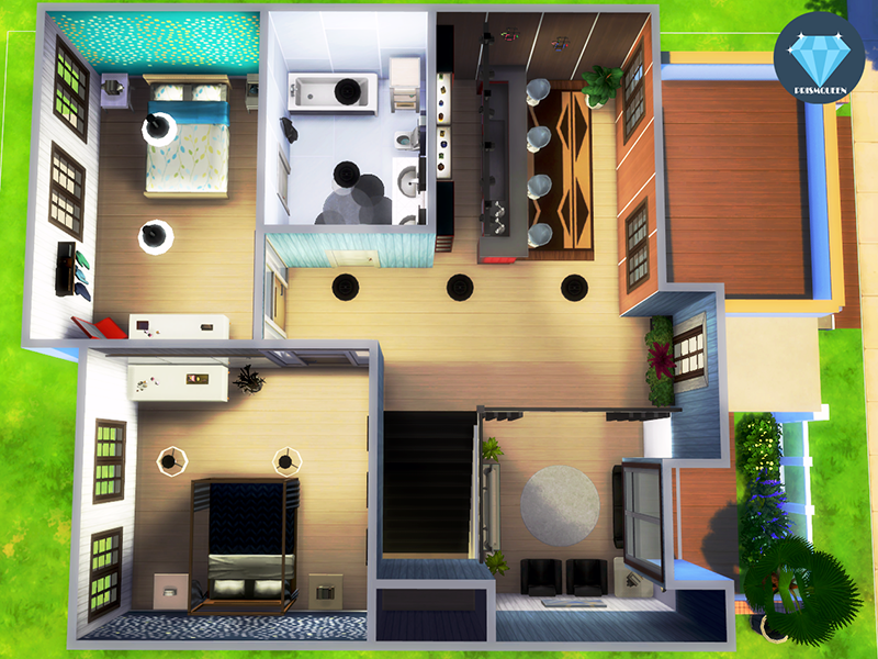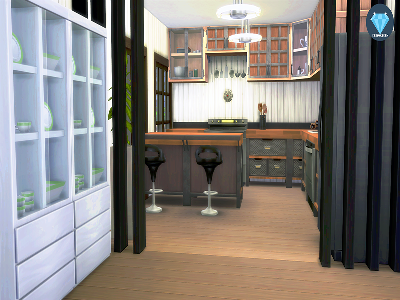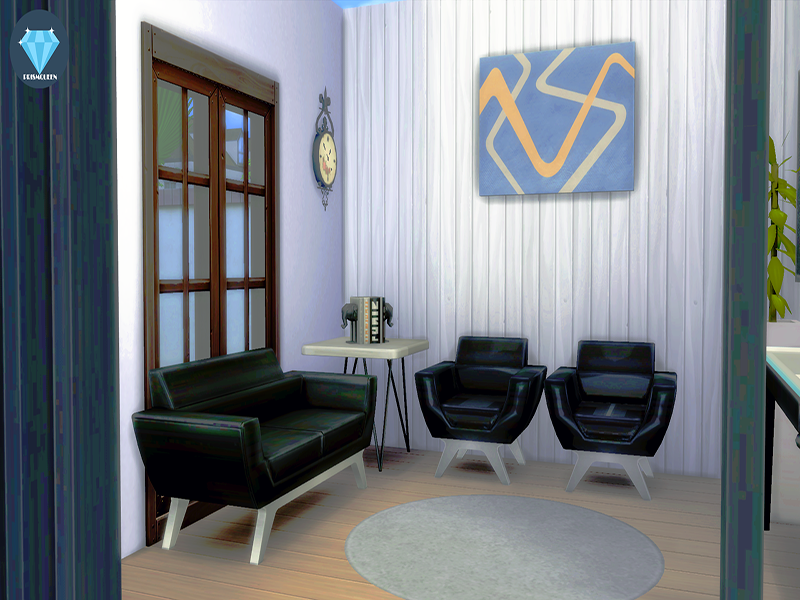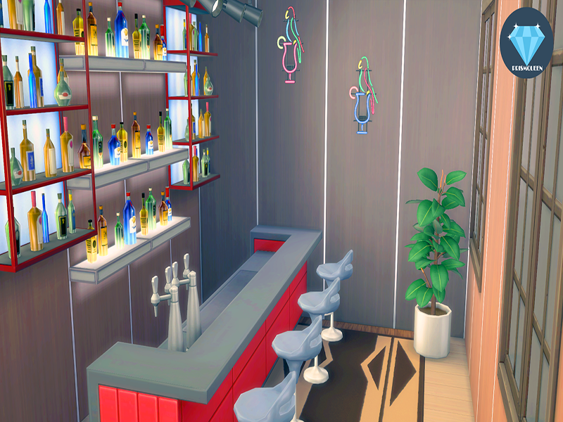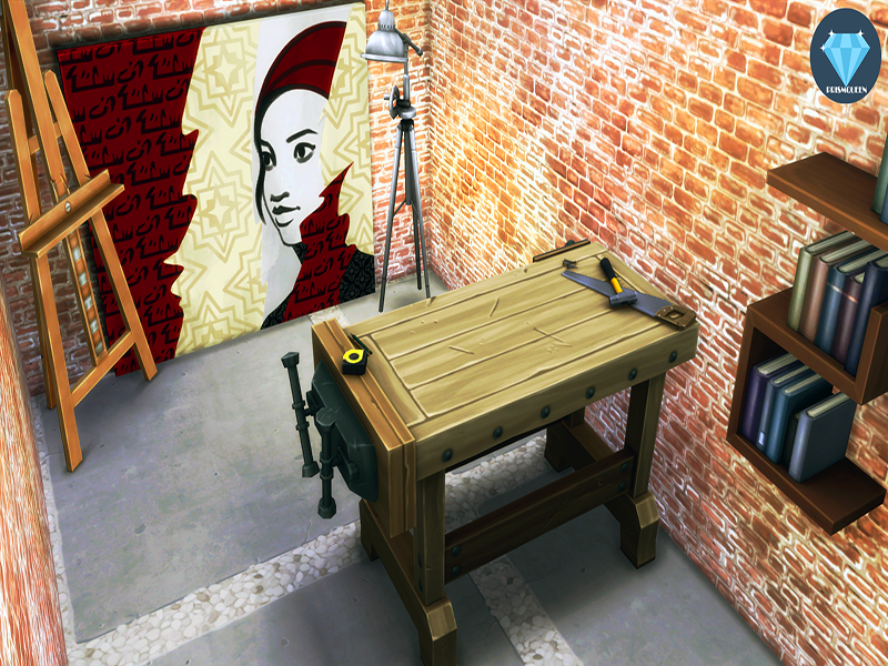 It is a two-story house with a garage and a small art studio connected to it. I also added a bartending corner at the second floor. An artist sim can concentrate on his/her creation without being distracted.
