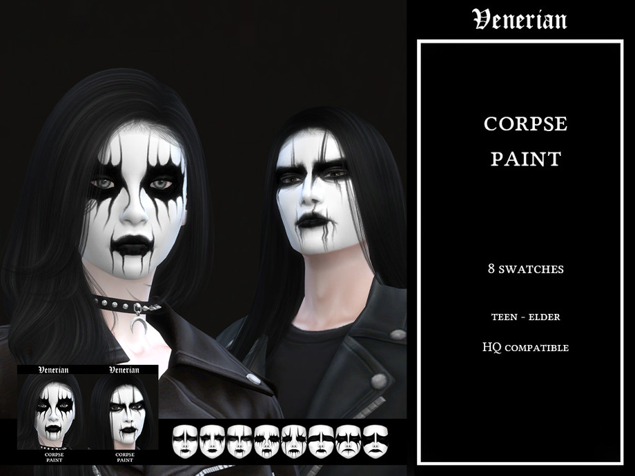Sims 4 — Corpse Paint by Venerian by Venerian — 8 swatches Teen to elder No gender or frame restrictions Disallowed for