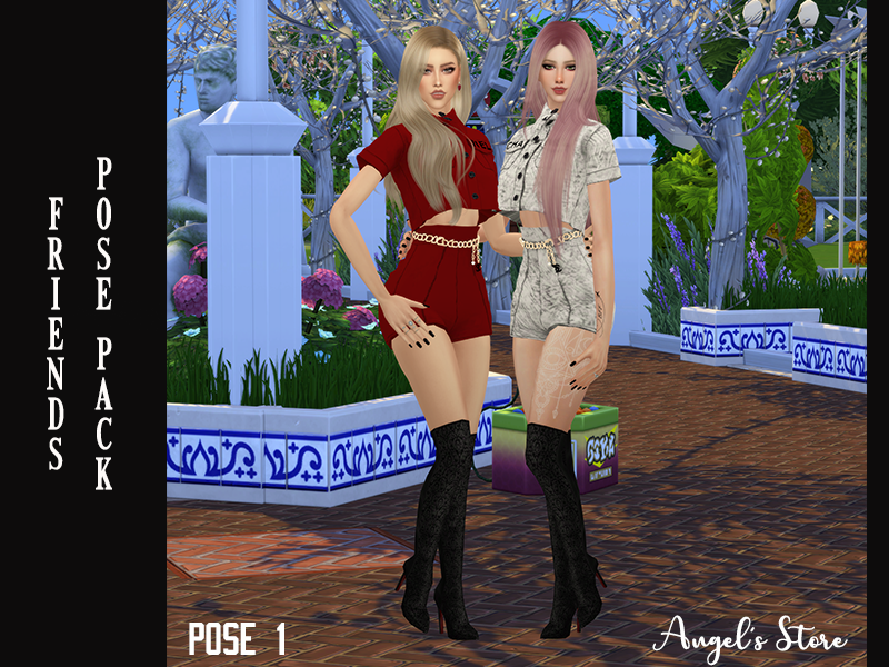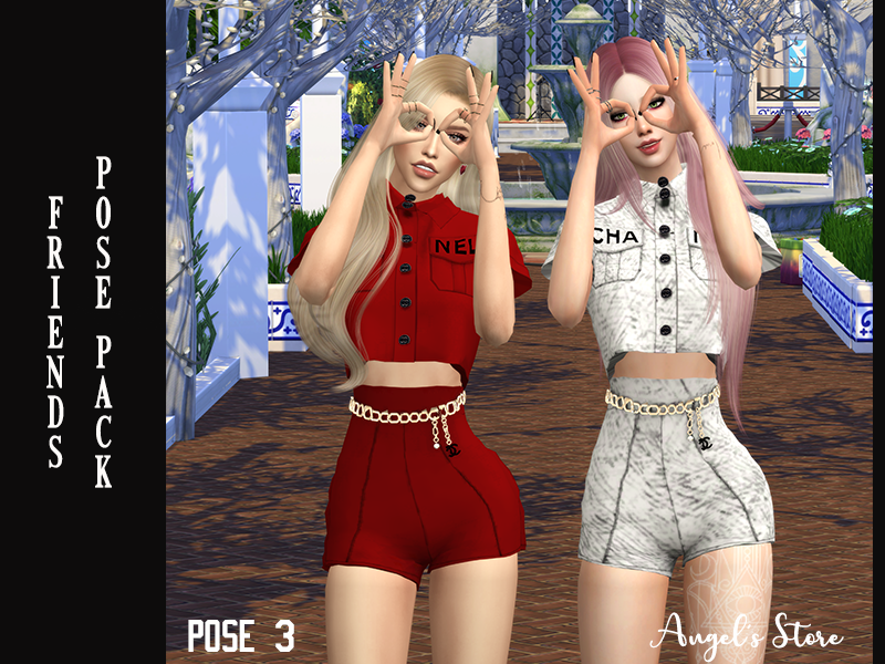 Sims Female Friend Pose Pack that includes four poses for two female friends in Sims 4 game mode. I hope you like and enjoy them.