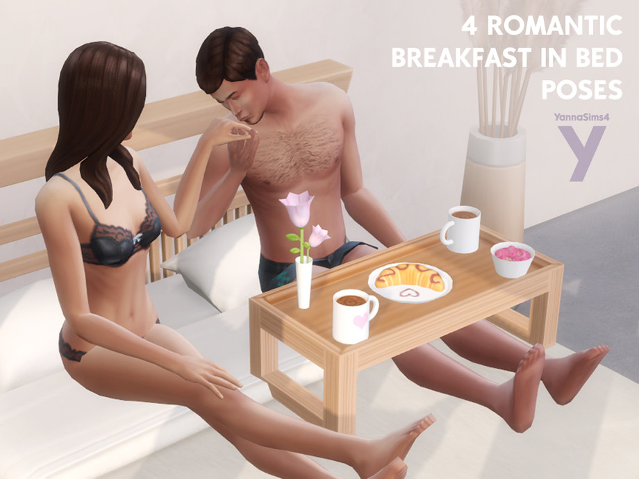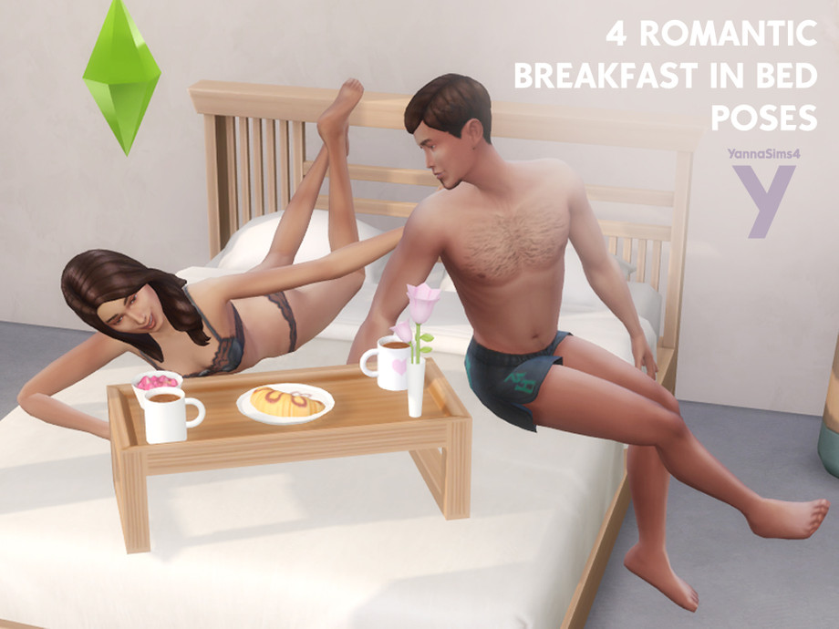 My pose pack comes with in-game instructions of where to place your Sims via the Teleport Mod (in this case, the middle of a bed) and has thumbnails of the breakfast in bed tray, so you can easily spot the pack if you have lots of poses.