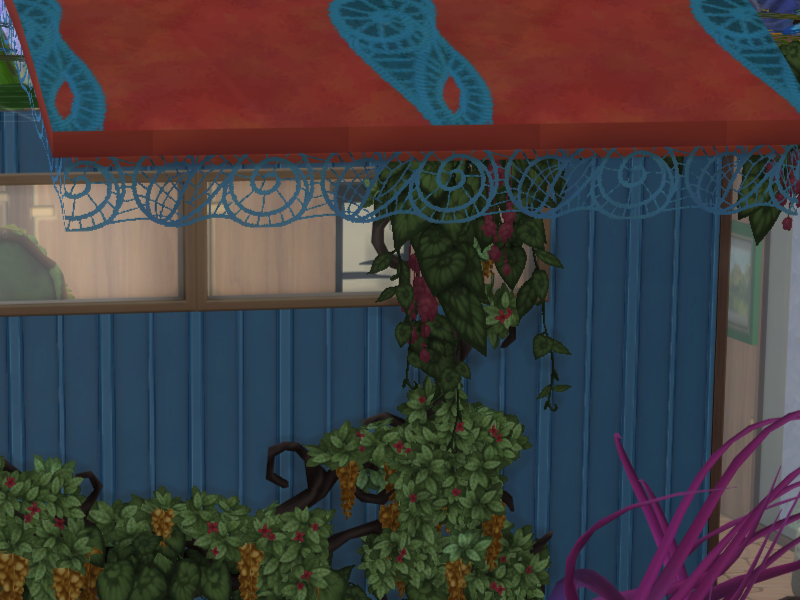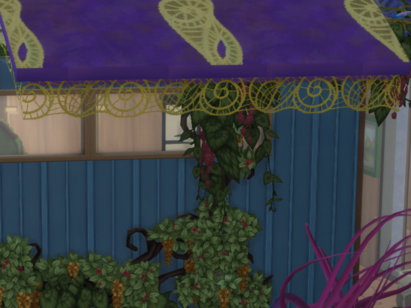 Sims 4 — Fabric roof drapes by EdnaScissorhands — Woven spirals used to trim fabric roofs