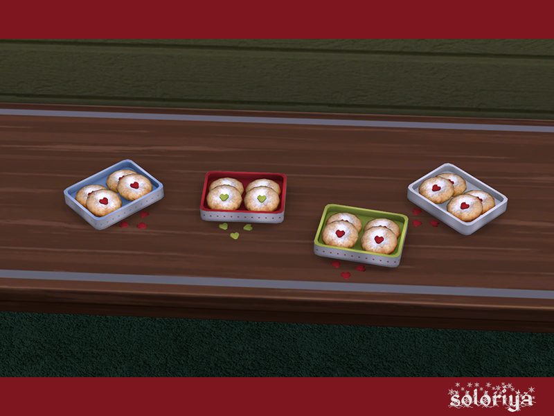 Four cookies with tiny hearts. Part of Be Merry set. 4 color variations. Category: Decorative - Clutter.