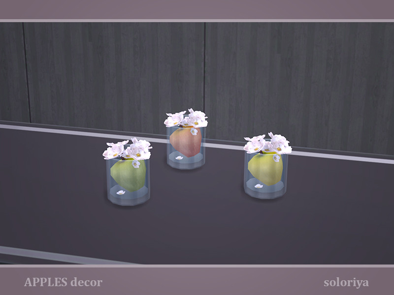 Apple in a glass with flowers. Part of Apples Decor set. 3 color variations. Category: Decorative - Clutter.