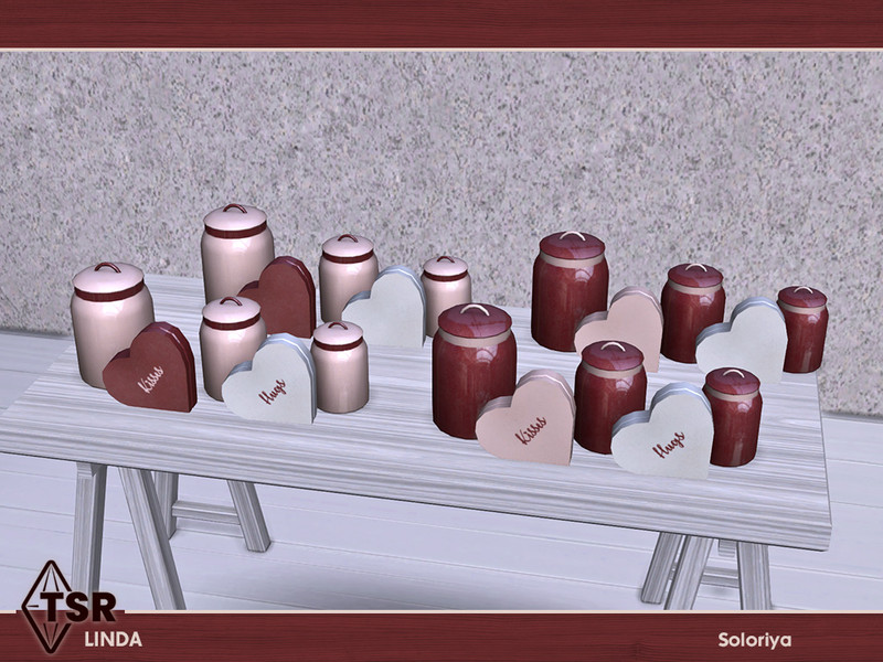 Jars with big hearts. Part of Linda set. 6 color variations. Category: Decorative - Clutter.