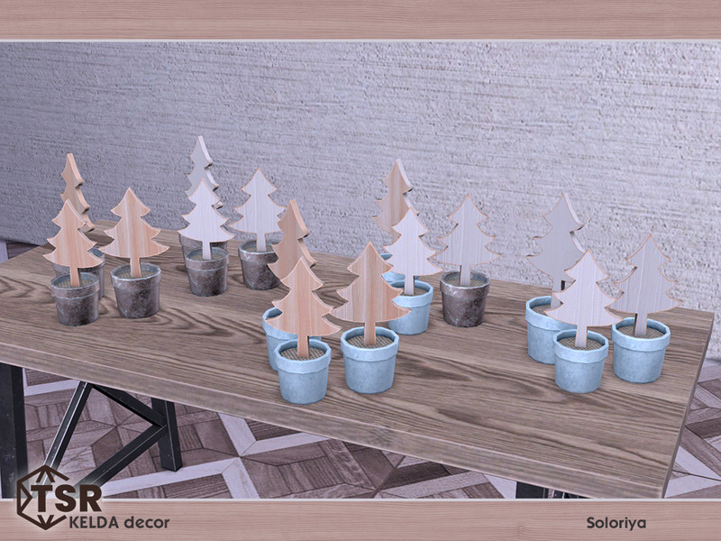 Wooden mini trees. Part of Kelda Decor set. 5 color variations. Category: Decorative - Clutter.