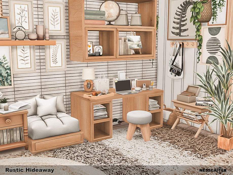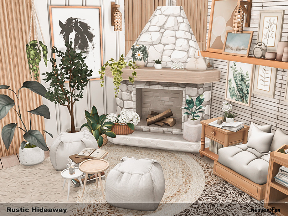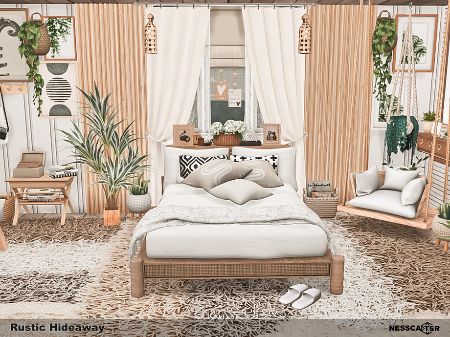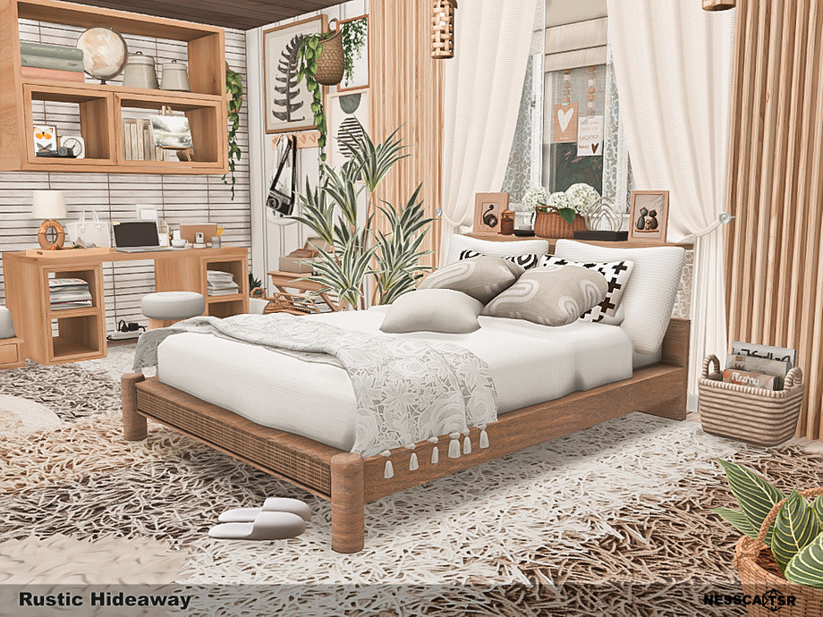 Rustic Hideaway blends warm wood tones, soft textiles, and gentle natural light into a cozy countryside bedroom filled with charm. Functionality, comfort and aesthetics, you will find it all in this bedroom. Fave fun!