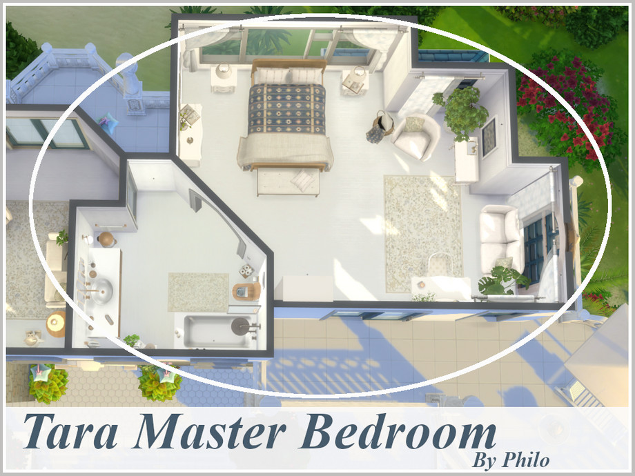 Sims 4 — Tara Master Bedroom by philo — A lovely romantic master bedroom for your sims. Because it's en-suite, it comes