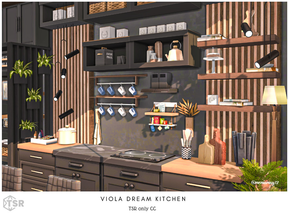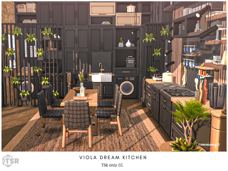Sims 4 — Viola Dream Kitchen by Moniamay72 — A beautiful modern kitchen in dark colors.