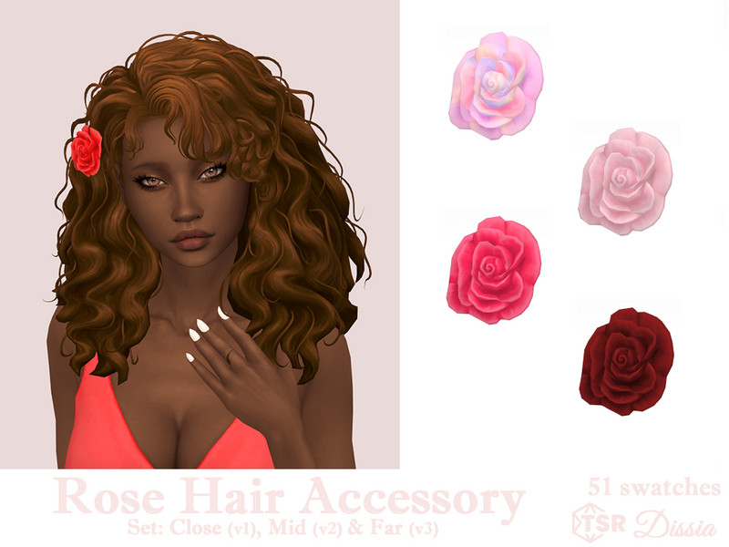 Sims 4 — Rose Hair Accessory by Dissia — Rose flower in sim hair