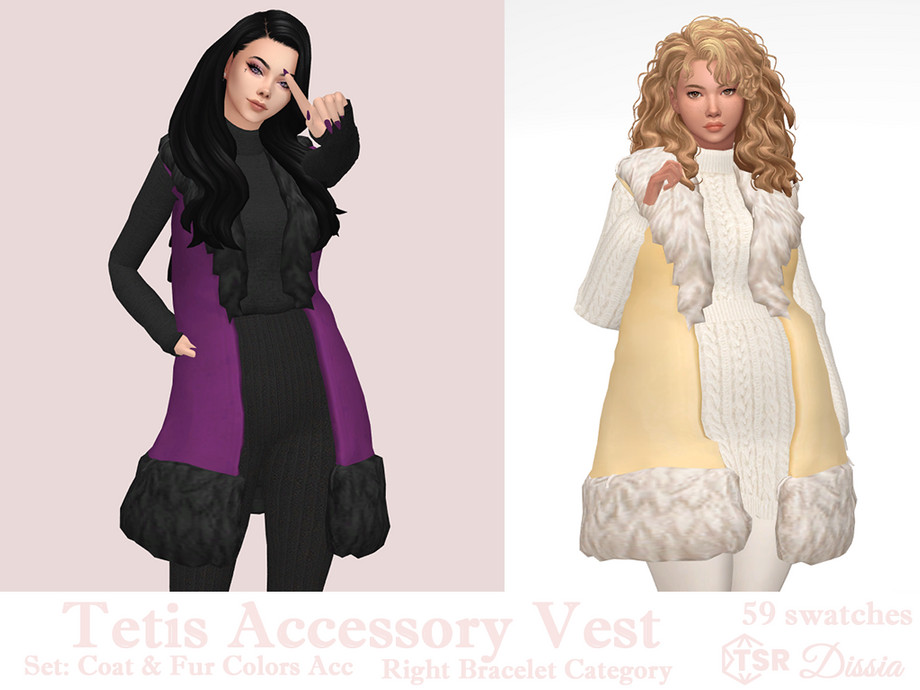Sims 4 — Tetis Accessory Vest by Dissia — Retro vest with fur in many colors