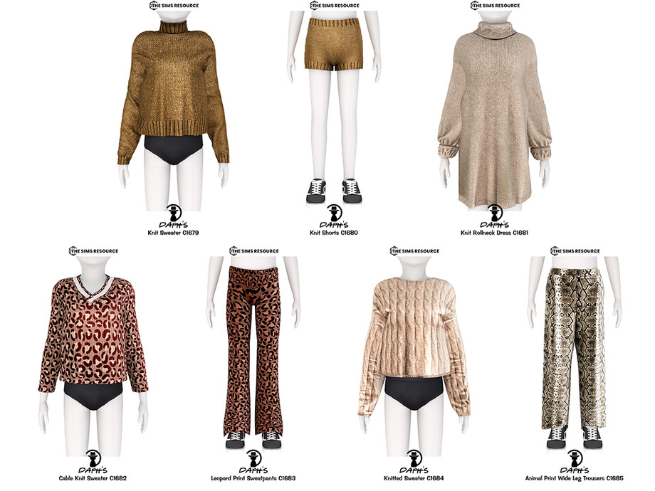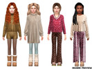 A nostalgic Alpha CC set for child Sims featuring cozy sweaters, flared pants, bold animal prints, and vintage 80s color tones. Perfect for bringing that retro childhood aesthetic to your world!