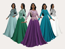 An intricately embroidered ballgown available in 4 versions: Black, gold, silver, and a subtle embossed effect. 22 swatches for each version. BGC.