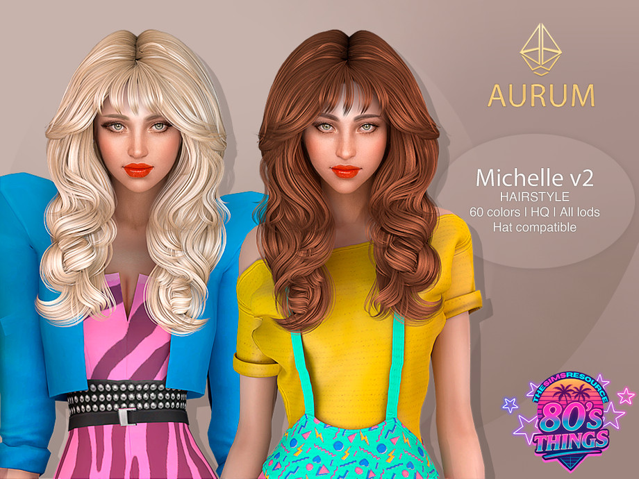 Sims 4 — Michelle Hairstyle  - 80s Blowout Layers with Curtain Bangs (2 versions) by Aurum — Long layered 80s blowout