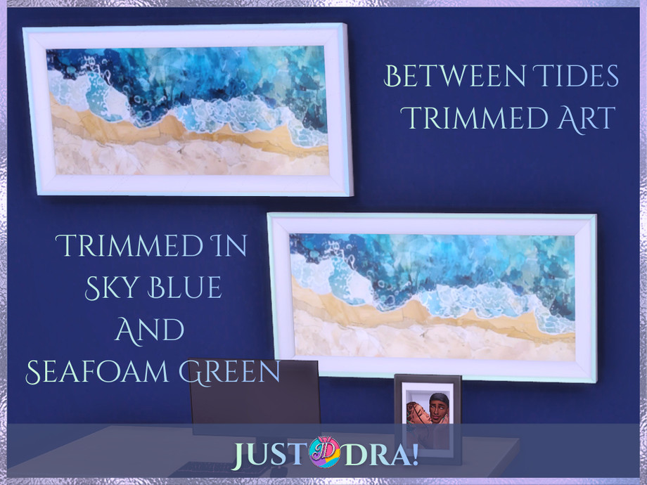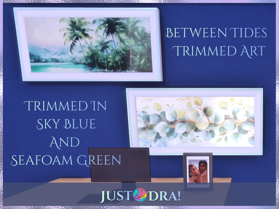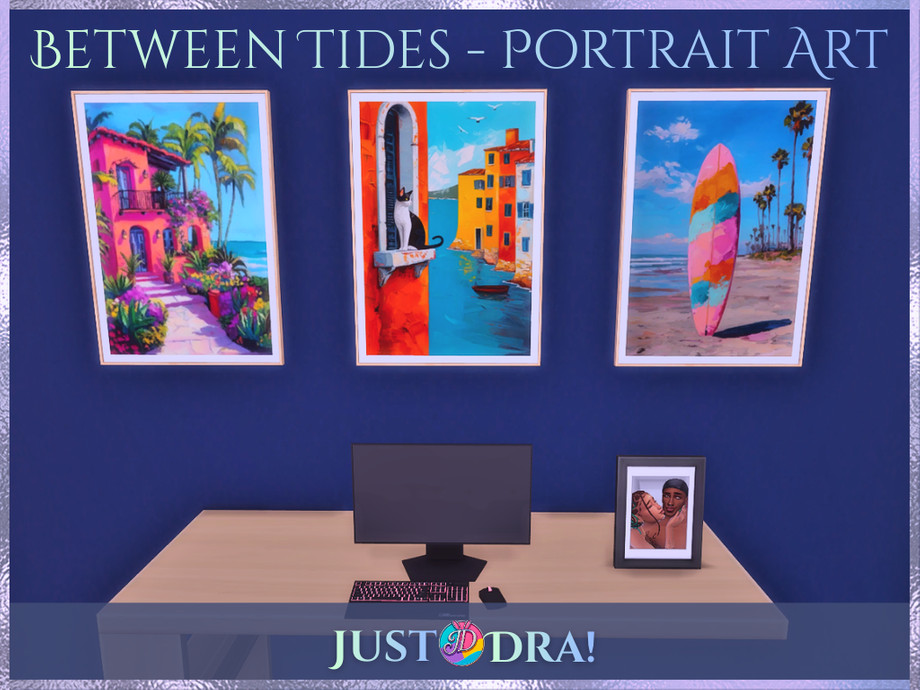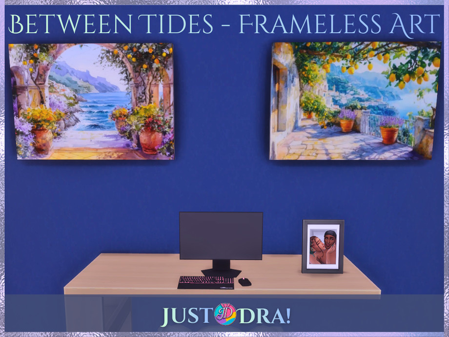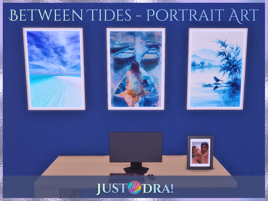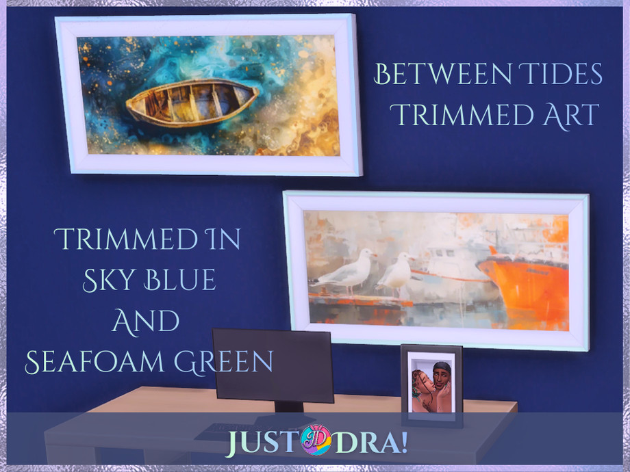 Today we're drifting further into Between Tides with a full coastal art set inspired by seaside escapes, sun-warmed stone, and Mediterranean calm This collection includes four distinct frame styles, each designed to layer beautifully into storytelling builds or lived-in coastal spaces- -Tall Portrait Frame with 4 curated artworks (Original Frame Mesh By thenumberswoman and Recolored-Retextured by Me) -Portrait Frame with 7 coastal art pieces (Original Frame Mesh by NynaeveDesign and Recolored-Retextured by Me) -Landscape Frames trimmed in sky blue and seafoam green, with 5 images available in both trims - Frameless Canvas option featuring 8 artworks for a modern, airy look All artwork in this set was originally sourced from Pexels and has been fully edited by me using Krita, Canva, and Photopea to fit the Between Tides aesthetic and color story. Soft, coastal, and endlessly versatile - this set is meant to feel like ocean air drifting through open windows. Terms: - Please link back to my CC, Mods, Sims if you feature them in content - Credit me if you share screenshots or videos - Do not claim as your own - Do not sell or put behind paywalls - No edits, recolors, or conversions to other games - Consider becoming a member on Patreon, if you feel generous and want to show some love. JustDraven