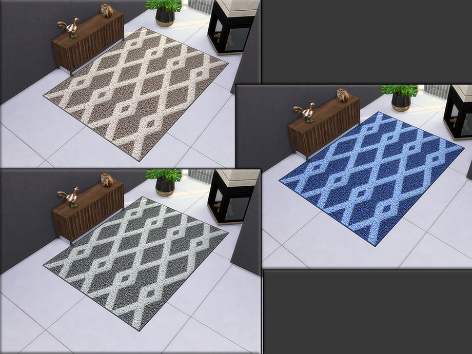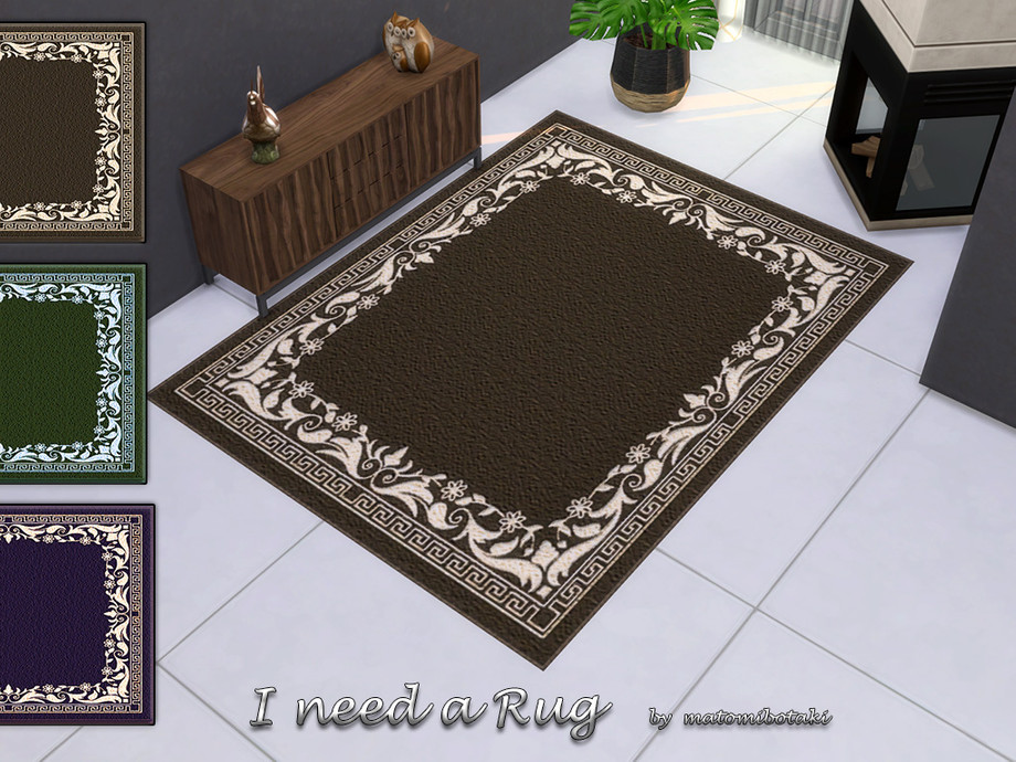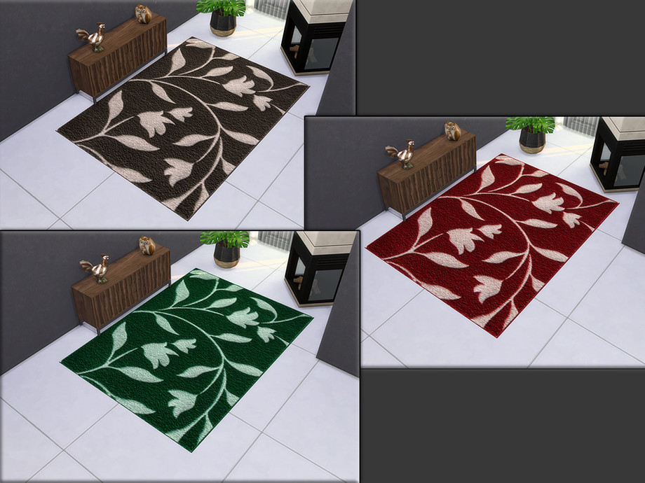 Timeless, chic rug with a floral pattern in 3 different colors, each item with custom thumbnail, created for Sims 4 by matomibotaki.