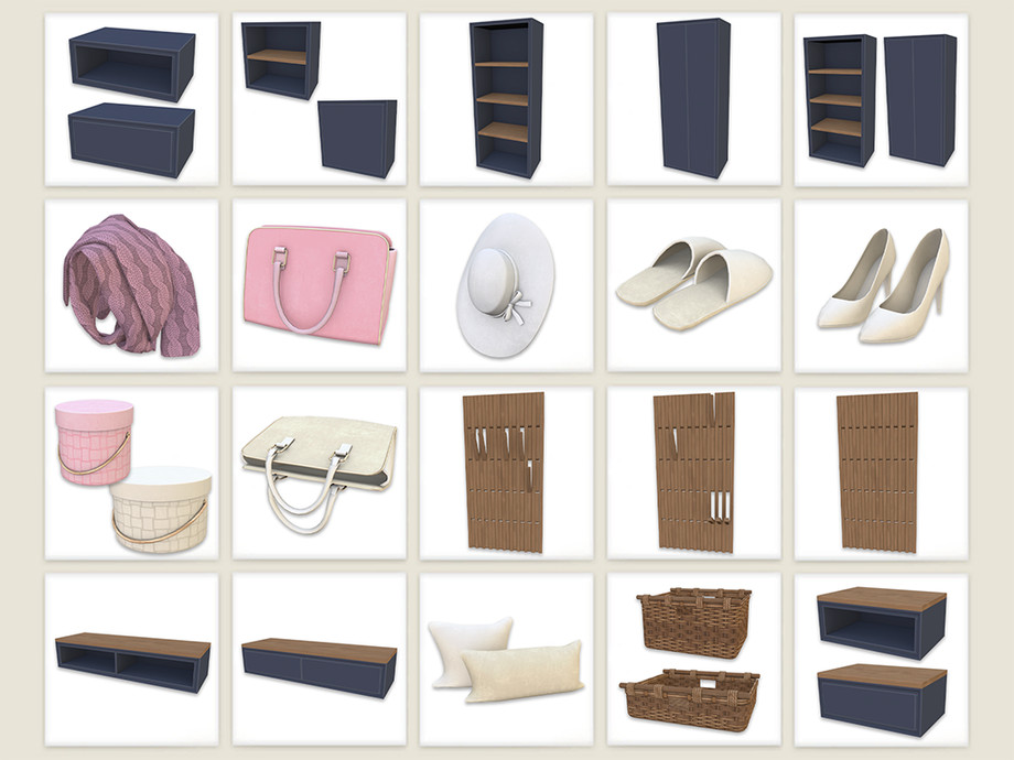 Part 3 - Entryway Set is base game compatible and consist of 7 items - Box V1, V2, Coat Rack V1,V2,V3, Top Cab V1,V2 Happy Simming! :)
