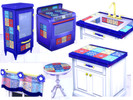 Back to cobalt blue! This Mexican Tile Kitchen Set is both lively and inviting. Why settle for plain appliance when you can get stylish blue ones? Comes with stove, sink, counter, fridge, table and curtains. Matching chair can be found in the base game.