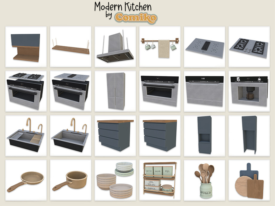 Sims 4 — Modern Kitchen Part 3 by Comiko — Part 3 - Modern Kitchen Set is base game compatible and consist of 7 items -