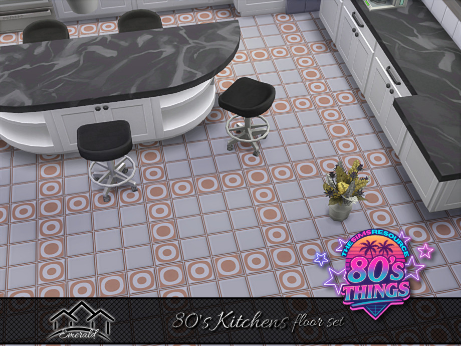 80's an increase decorative ceramic tiles with artistic motifs and geometric patterns that add a cheerful nostalgic touch to kitchens walls and floors.(floor set)