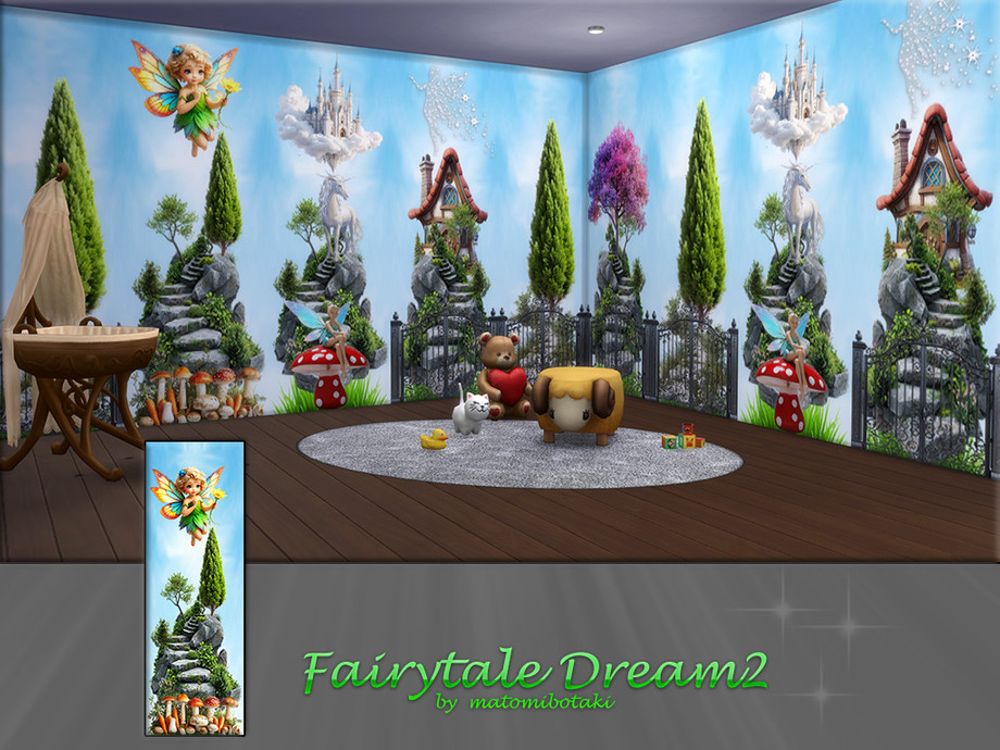 Fairytale children's wallpapers to dream and let your imagination run wild, 5 different motifs each in 3 wall heights and custom thumbnail , created for Sims 4 by matomibotaki.