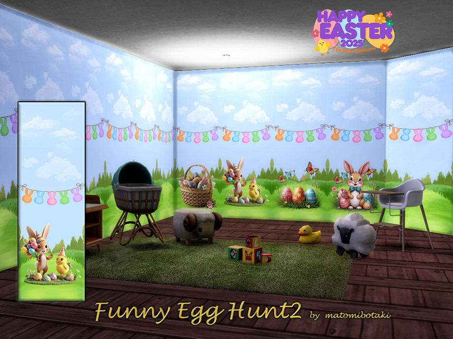 Sims 4 — Funny Egg Hunt2.package by matomibotaki — Funny Easter wallpaper with different motifs, the set includes 5