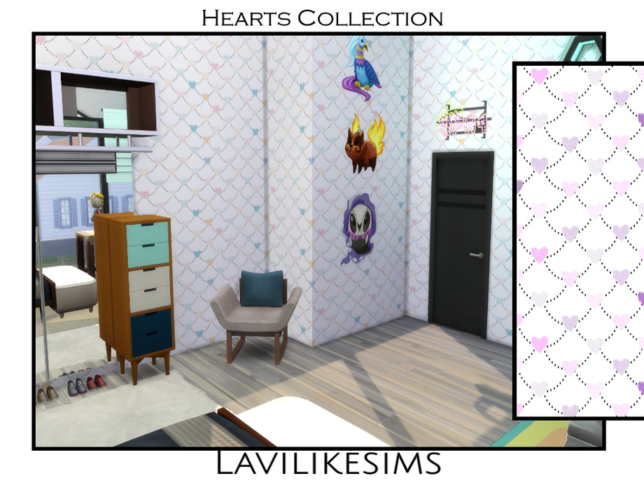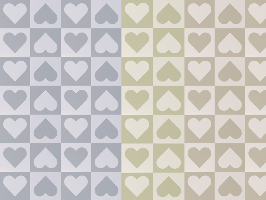 A set of 3 walls ft. hearts, in 4 colours each and a plain one