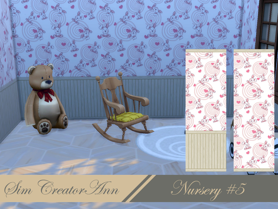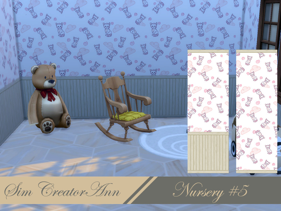 A cute nursery wallpaper, comes in 3 wall heights, haves 10 swatches and it's base game. Price is: 6 SD