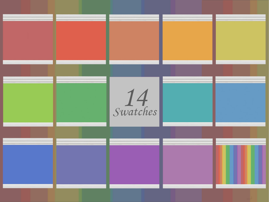 Colourful walls in all the colours of the rainbow and their blended combinations. 14 swatches.