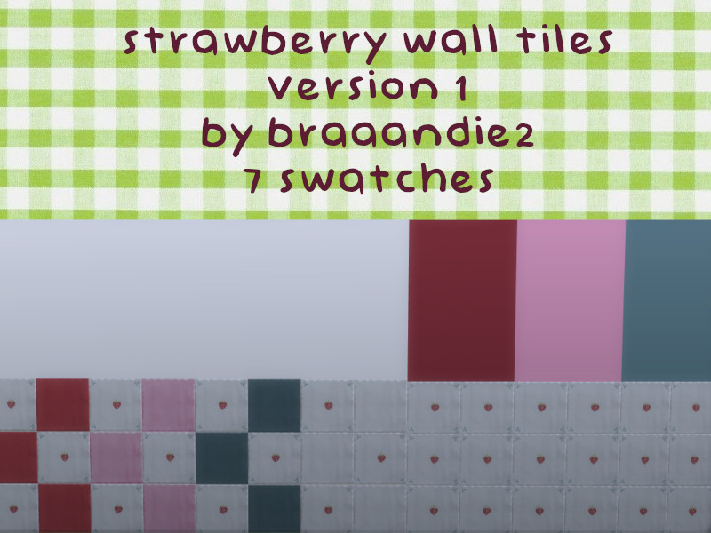 Strawberry wall tiles, these ones go half way up the wall with the top part of the wall painted. There are 7 swatches of this one